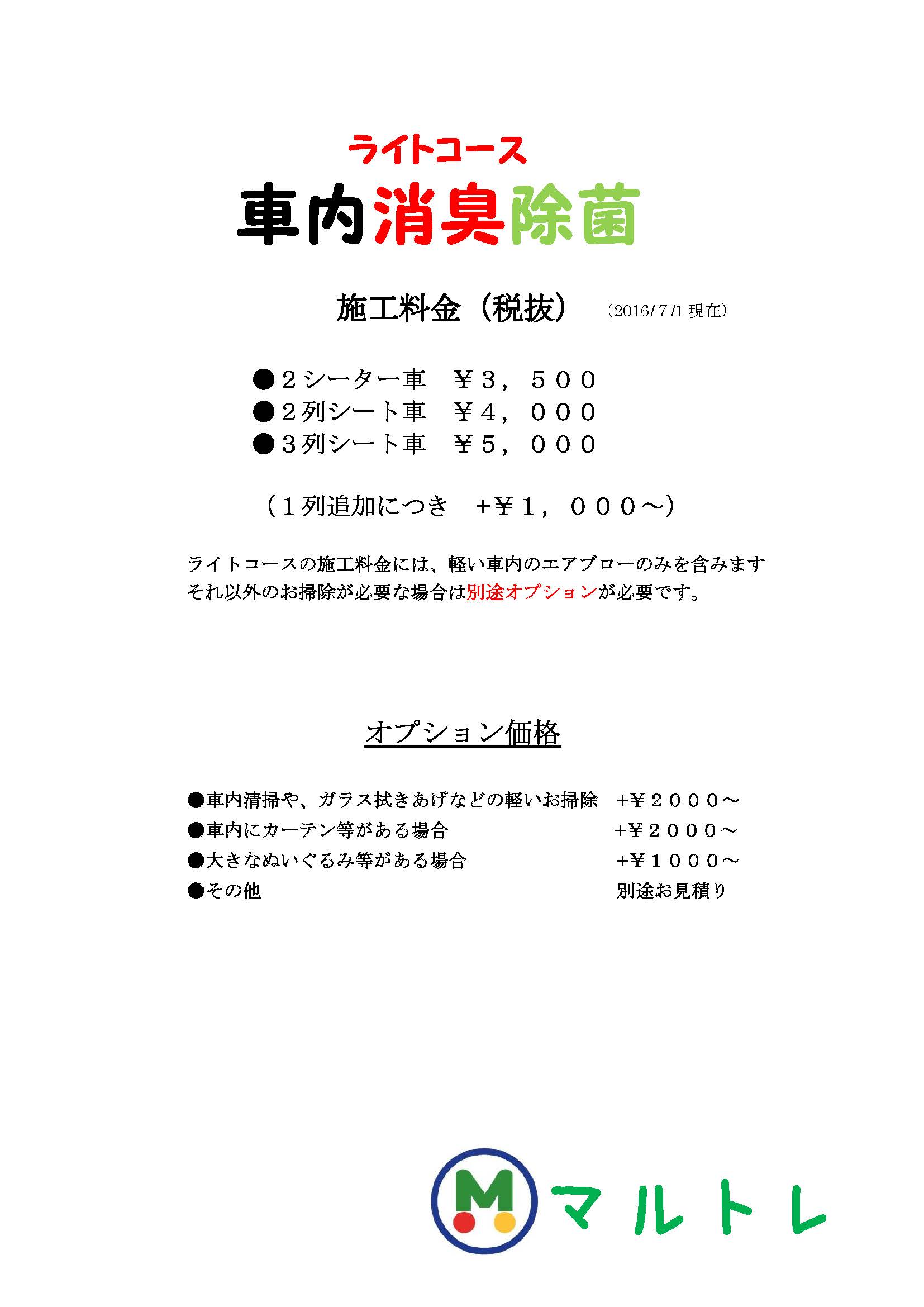 ライトコース・・・消臭除菌処理のみ:格安施工(汚れはとれない)
